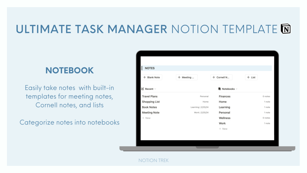 β¨Take your productivity to the next level with the Ultimate Task Manager Notion template by Notion Trekβ¨